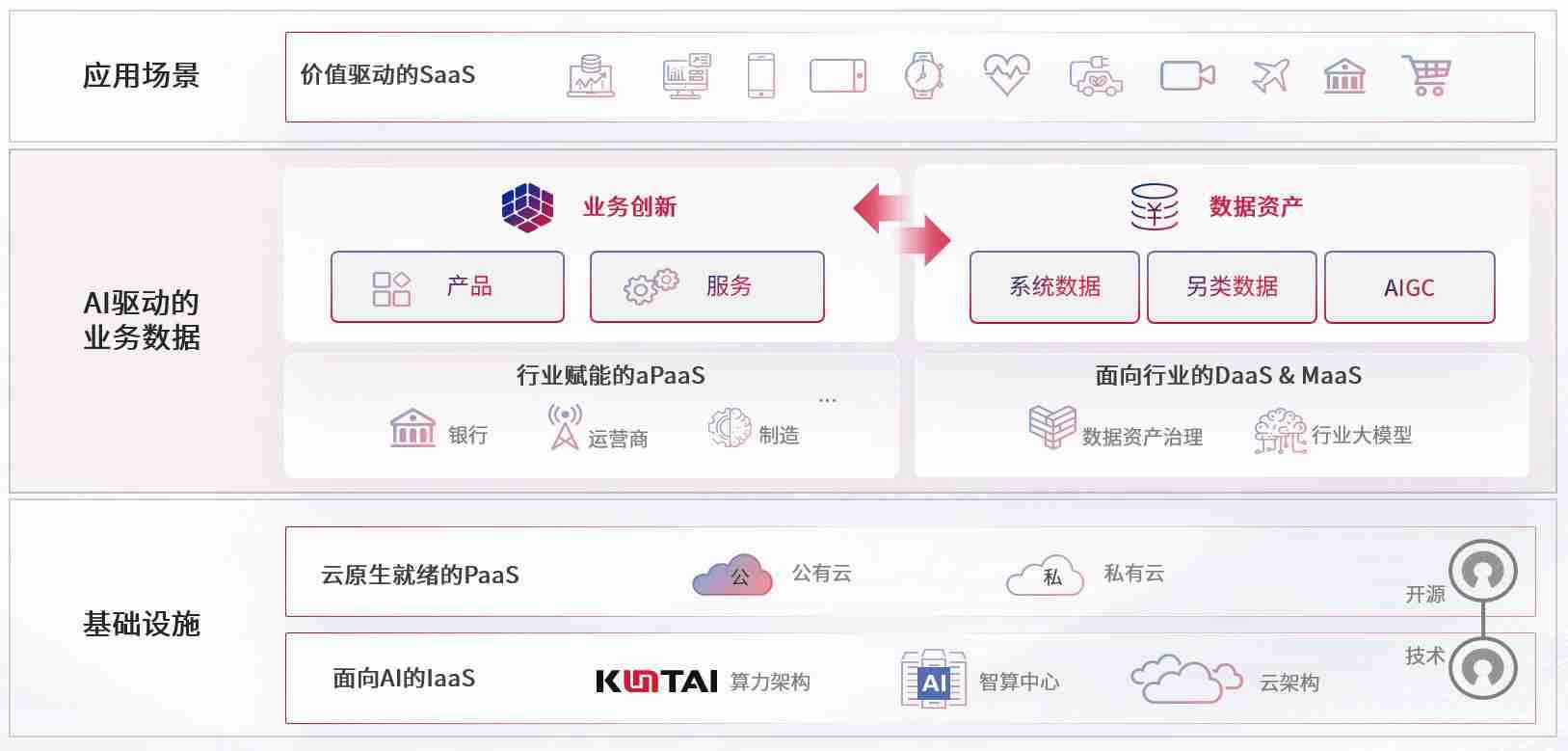 数字时代,,,,围绕企业数字化转型的关键要素,,,,益达娱乐数码开创性的提出数云融合战略和技术体系框架,,着力在云原生、、、数字原生、、、AI原生和信创产业上架构产品和服务能力,,,为处在不同数字化转型阶段的快消零售、、汽车、、金融、、医疗、、、政企、、、教育、、运营商等行业客户提供泛在的敏捷IT能力和融合的数据驱动能力,,,,构建跨界融合创新的数字业务场景和新业务模式,,,助力企业级客户建立面向未来的核心能力和竞争优势,,,全面推动社会的数字化、、、、智能化转型升级。。